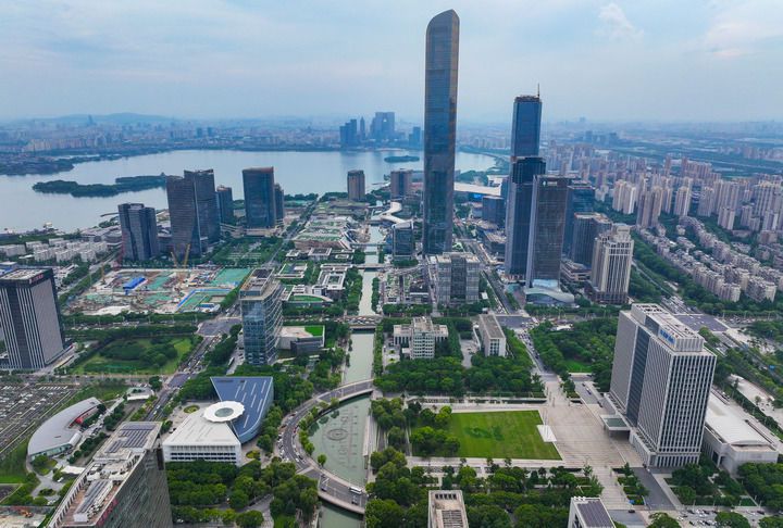 苏州工业园区(无人机照片,2023年7月3日摄)。新华社记者李博摄