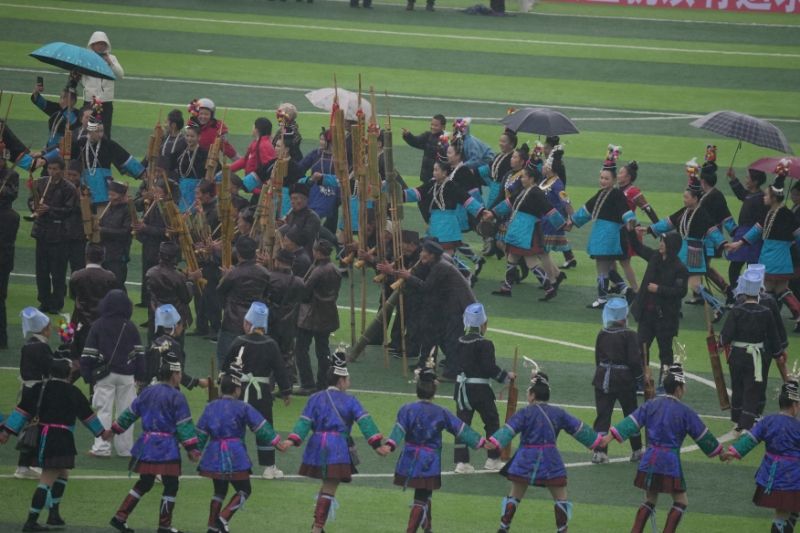队旗招展、芦笙悦响、锣鼓喧天……1月6日一早,冒着淅沥小雨,在贵州省黔东南苗族侗族自治州榕江县的“村超”球场,欢快的多耶舞和炫目的烟花过后,2024年“村超”赛季正式拉开帷幕。