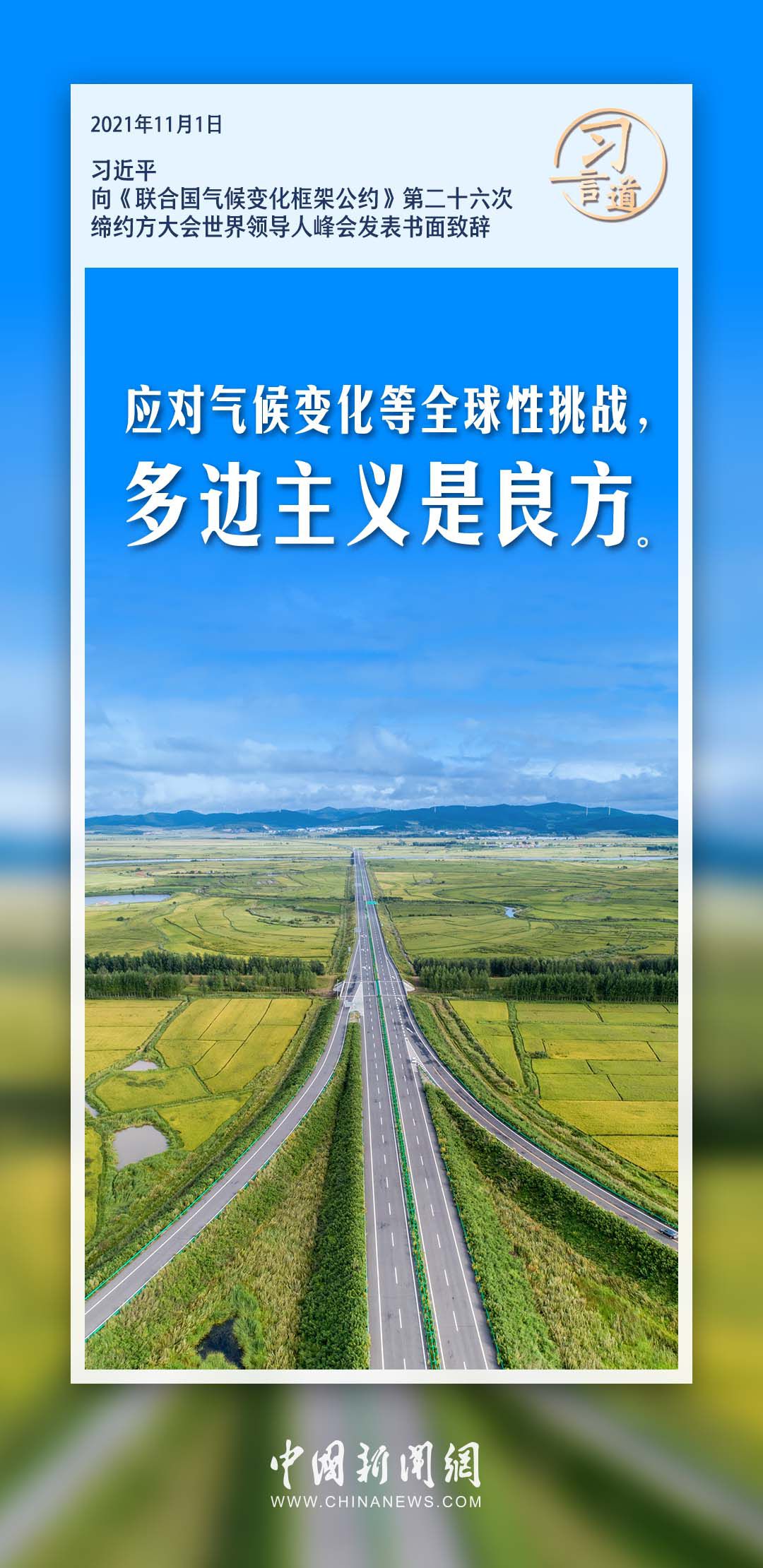 在气候变化挑战面前,人类命运与共。国家主席习近平多次发表重要论述,强调应对气候变化等全球性挑战,多边主义是良方。