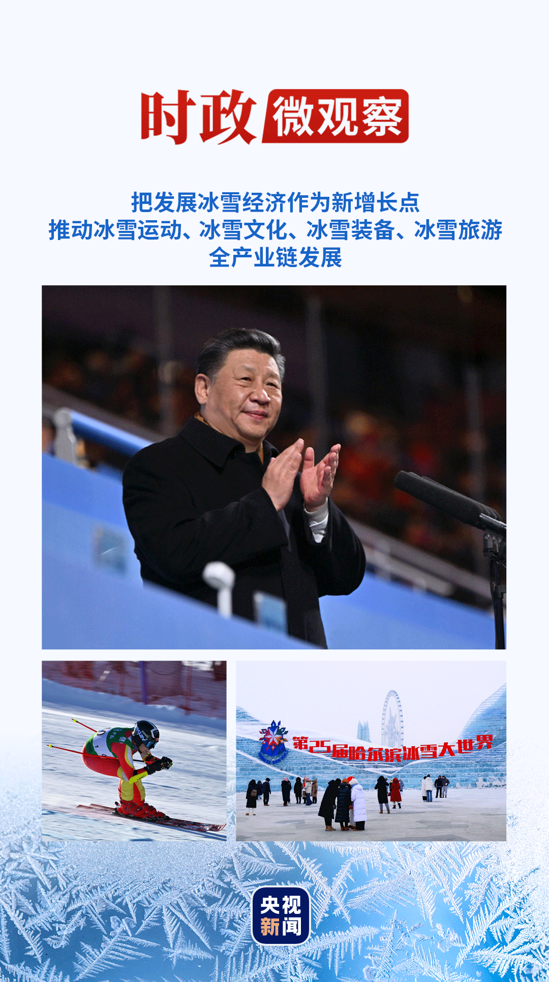 去年在黑龙江考察时,习近平总书记提出殷殷期许:“把发展冰雪经济作为新增长点,推动冰雪运动、冰雪文化、冰雪装备、冰雪旅游全产业链发展。”