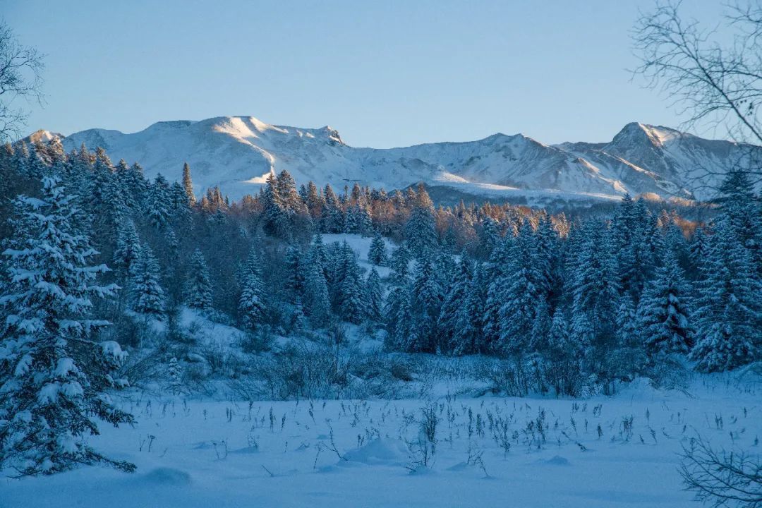 △2023年12月17日,吉林抚松县松江河镇,长白山西坡为大雪覆盖,景色如画。