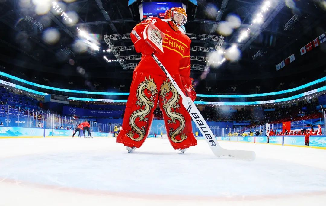 △北京冬奥会上,女子冰球门将周嘉鹰穿着中国龙护具。