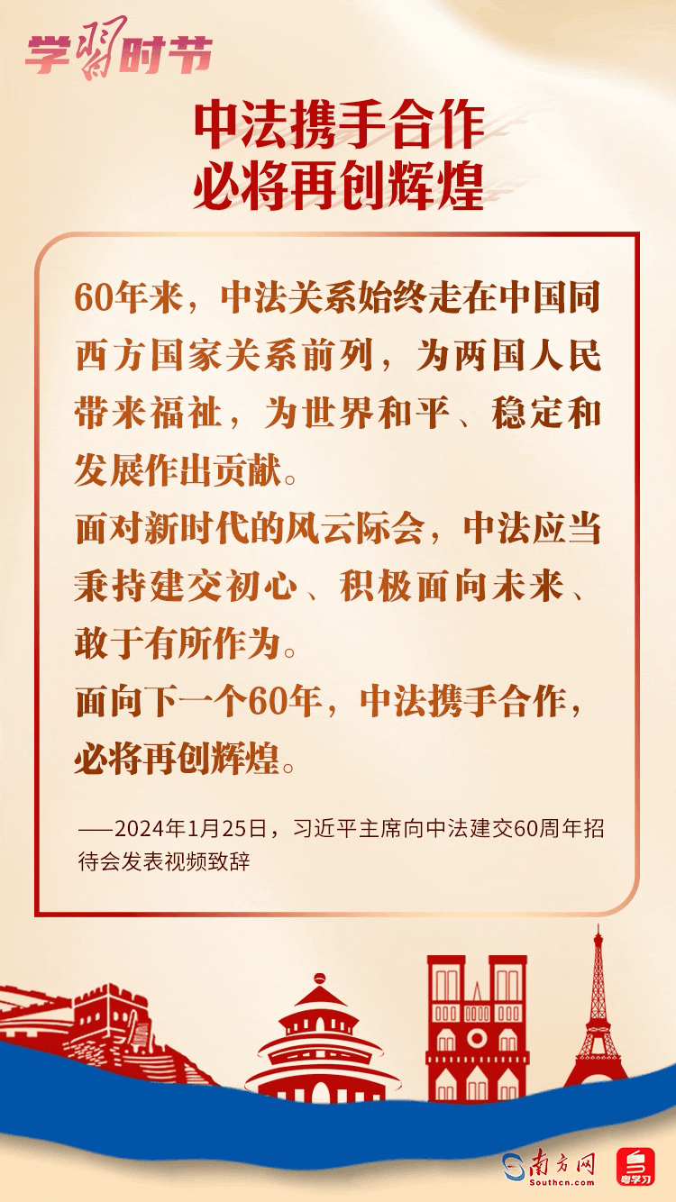 法国是第一个同中国建立正式外交关系的西方大国,“独立自主、相互理解、高瞻远瞩、互利共赢”的中法建交精神引领两国关系始终走在中国与西方大国关系前列。历经60年风雨,中法两国将继续秉持独立自主精神屹立于世界大国之林,将继续以成熟稳健的双边关系为动荡不安的世界提供更多的稳定性。