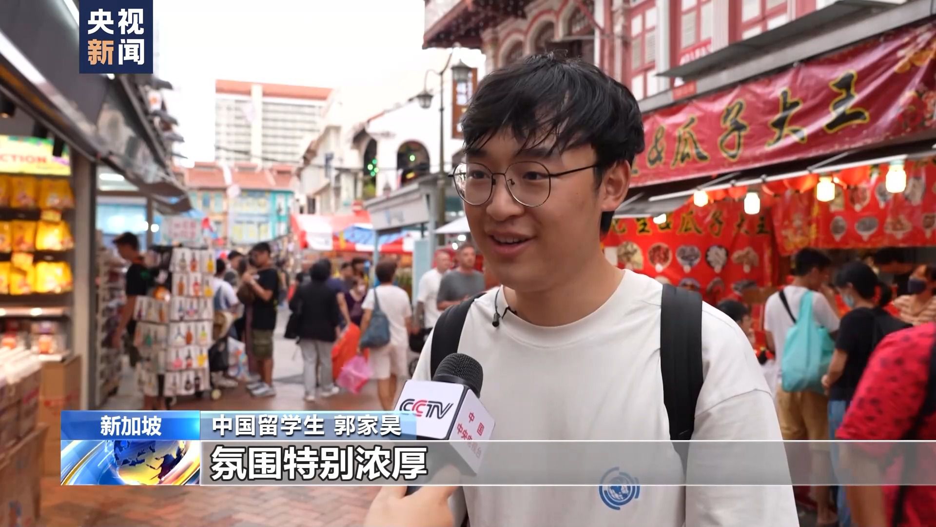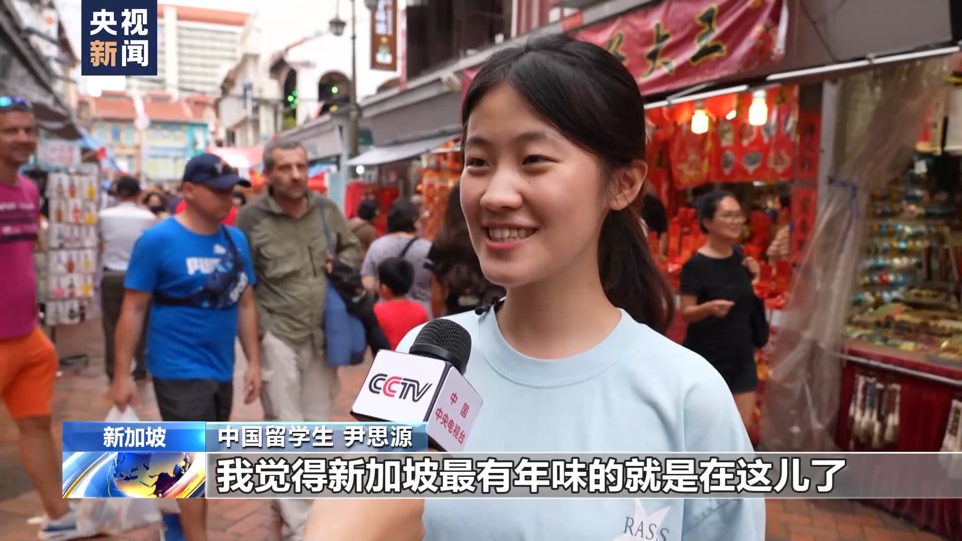 中国留学生 尹思源:我觉得新加坡最有年味的,就是在这儿了——牛车水。在我看来,这里是年味最足的地方,其实也是代表着大家都过来参观有中国气氛的牛车水,大家可以一起来这里吃个火锅,一起聚一聚、吃个团圆饭。