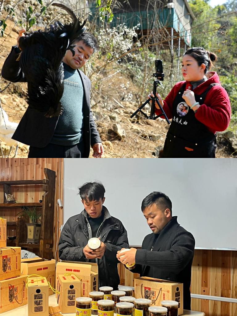 如今,山还是那些山,袁彬已将乌骨鸡卖到全国各地。这背后是他为打开销路进行的探索:他尝试电商直播,直播间就设在鸡棚。产地直销、直播选货……他的直播间经常“爆单”。去年9月,袁彬带着村里几个年轻人一起搞电商直播,把他们培养成了月薪近万元的带货主播。