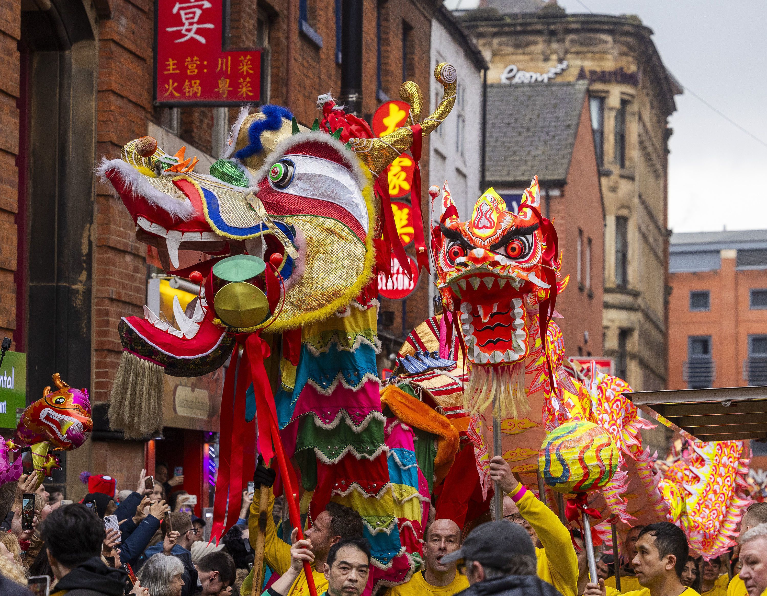 △ 当地时间2024年2月11日,英国曼彻斯特,表演者进入中国城,参加中国农历龙年春节的庆祝活动。