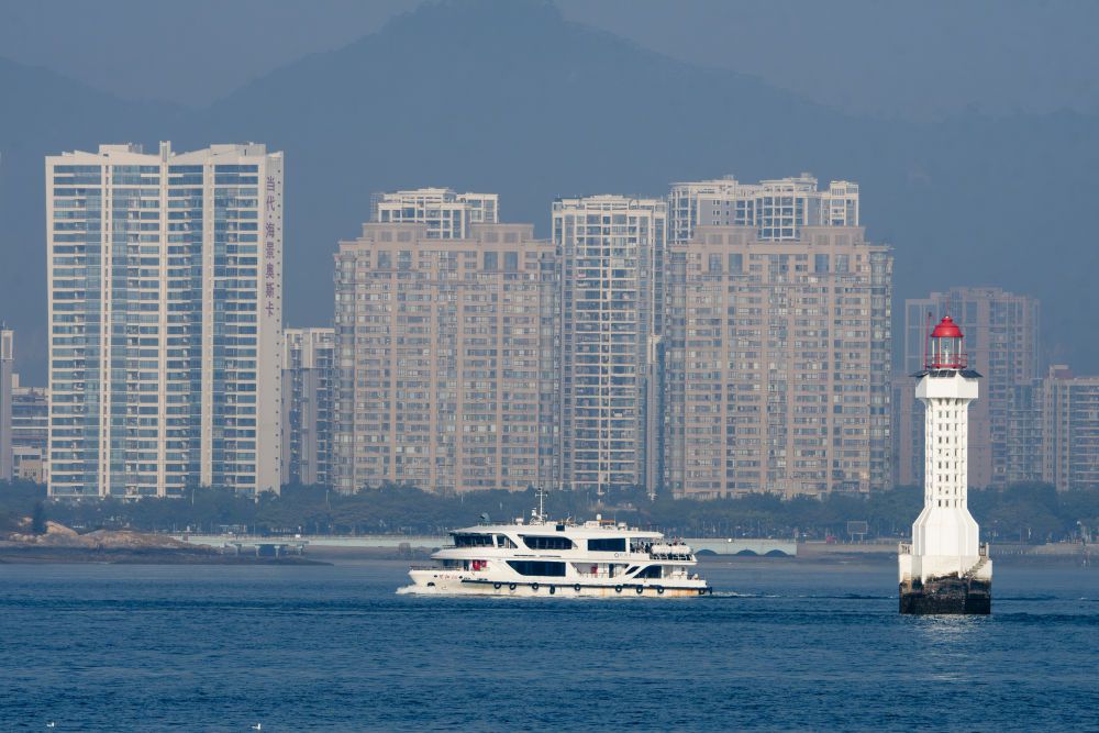 2024年1月5日,一艘游轮在厦门海湾公园附近的海面上穿行。新华社记者 魏培全 摄