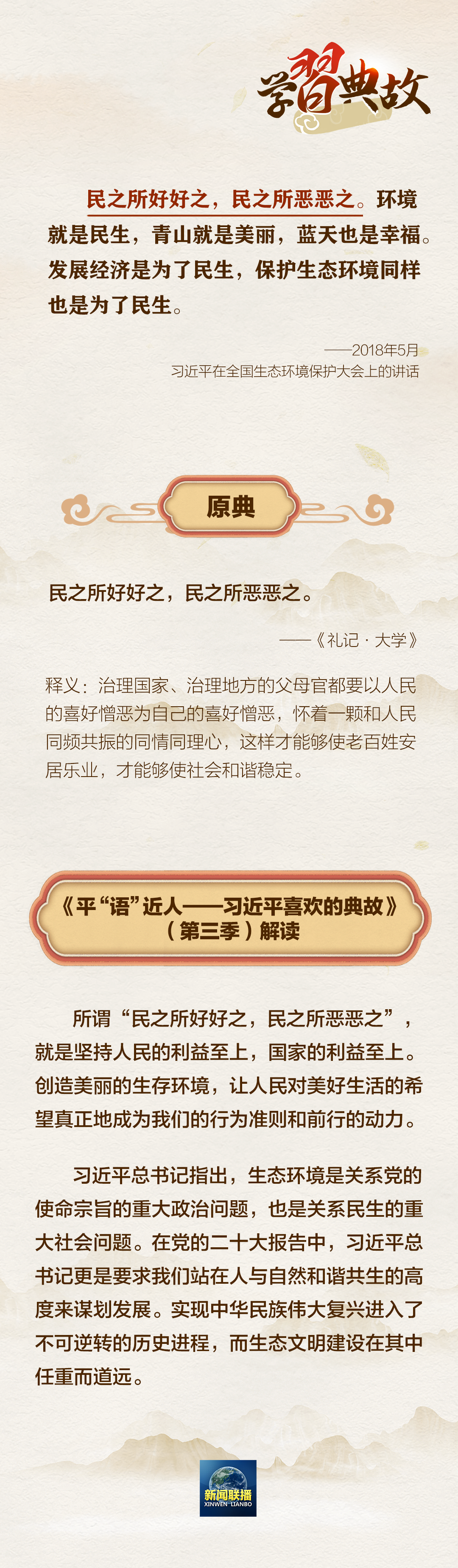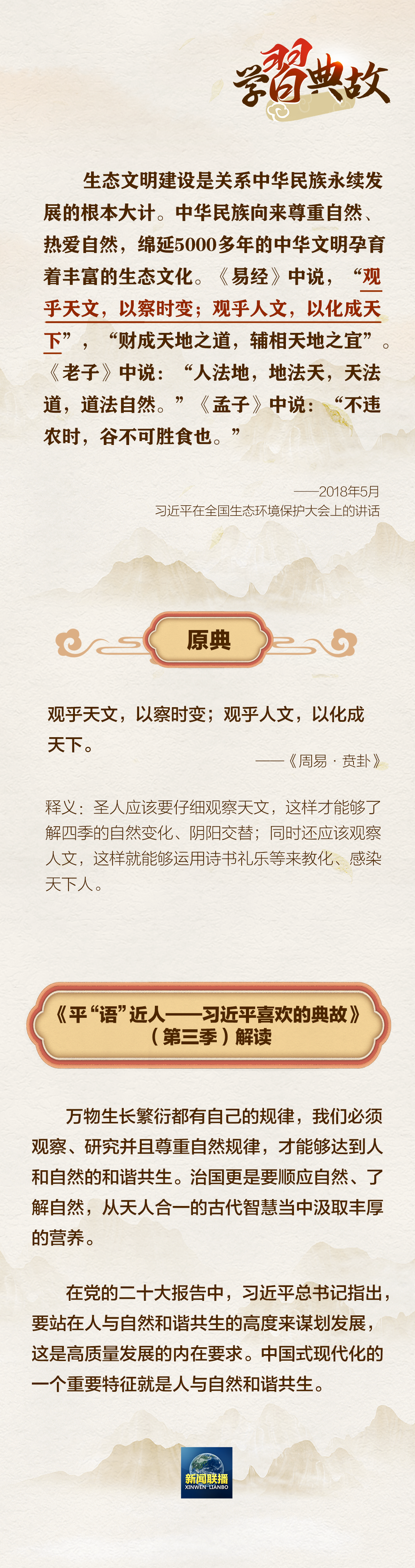 中华民族的伟大复兴,生态文明是题中应有之义。党的二十大报告指出:“大自然是人类赖以生存发展的基本条件。尊重自然、顺应自然、保护自然,是全面建设社会主义现代化国家的内在要求。”围绕“生态文明”这一主题,总书记曾讲到哪些典故?一起学习↓↓↓