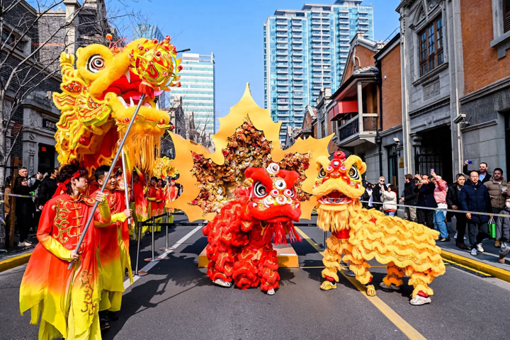 2024年2月10日,上海张园举办舞龙舞狮活动,为市民和游客献上一场视觉盛宴。