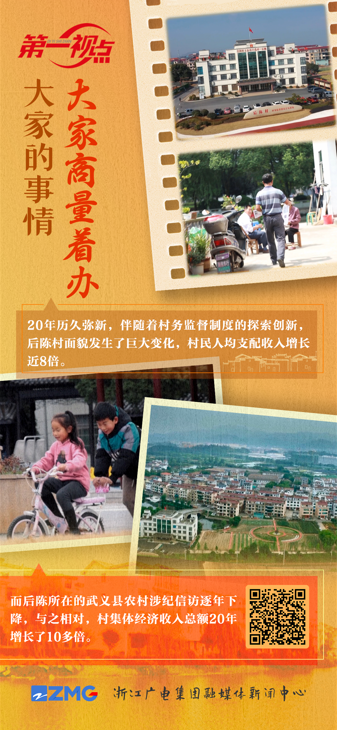 20年历久弥新,伴随着村务监督制度的探索创新,后陈村面貌发生了巨大变化,村民人均支配收入增长近8倍。而后陈所在的武义县农村涉纪信访逐年下降,与之相对,村集体经济收入总额20年增长了10多倍。