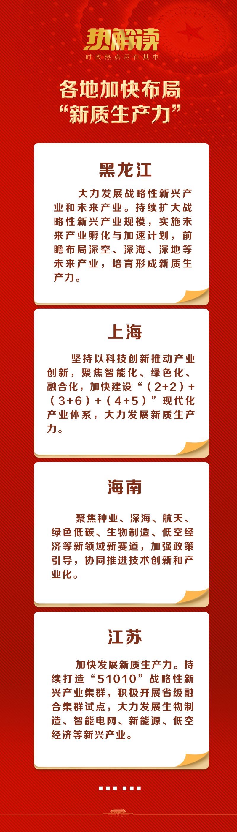 加快发展新质生产力已成为2024年推进经济社会高质量发展的主旋律。各地抢抓机遇,纷纷布局。在各省区市2024年政府工作报告中,多地将加快培育新质生产力列为重点工作任务。