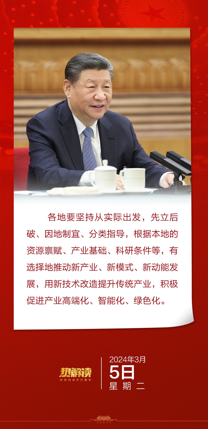 “新质生产力”是总书记谈到的重要关键词。总书记指出,“各地要坚持从实际出发,先立后破、因地制宜、分类指导”,“积极促进产业高端化、智能化、绿色化”。
