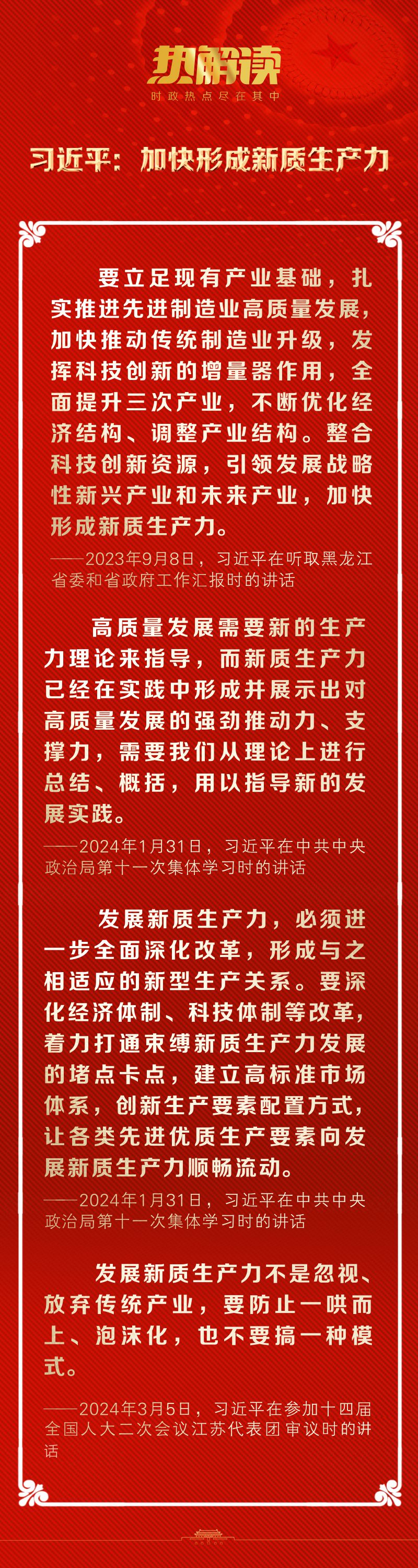 从2023年底召开的中央经济工作会议要求发展新质生产力,到今年中央政治局首次集体学习时聚焦“新质生产力”,再到今年政府工作报告将加快发展新质生产力列为2024年十大工作任务之首,一系列重要安排部署释放出鲜明信号,即发展新质生产力重要且迫切。