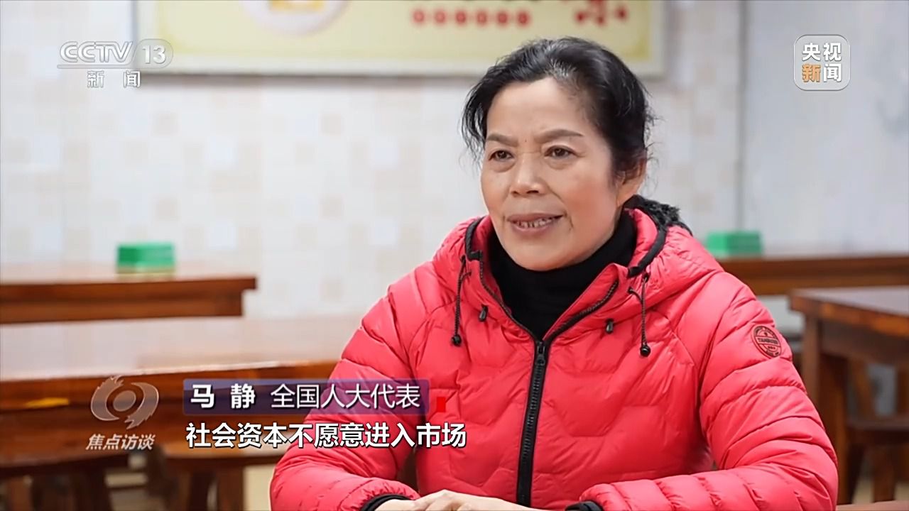 全国人大代表 马静:由于利润等原因,社会资本不愿意进入市场,我也希望政府通过减免房租、政策上的帮扶等降低成本,引导社会资本参与社区老年食堂,让更多的老年人在家门口吃上可口的饭菜。