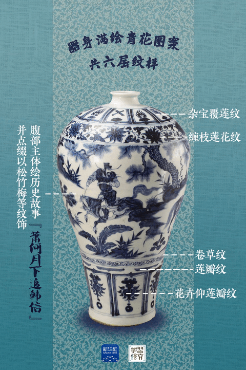 “元代是中国陶瓷史上不容忽视的重要时期。”宋燕介绍,这件藏于南京市博物馆的元青花萧何月下追韩信图梅瓶向人们展示了元代制瓷水平。