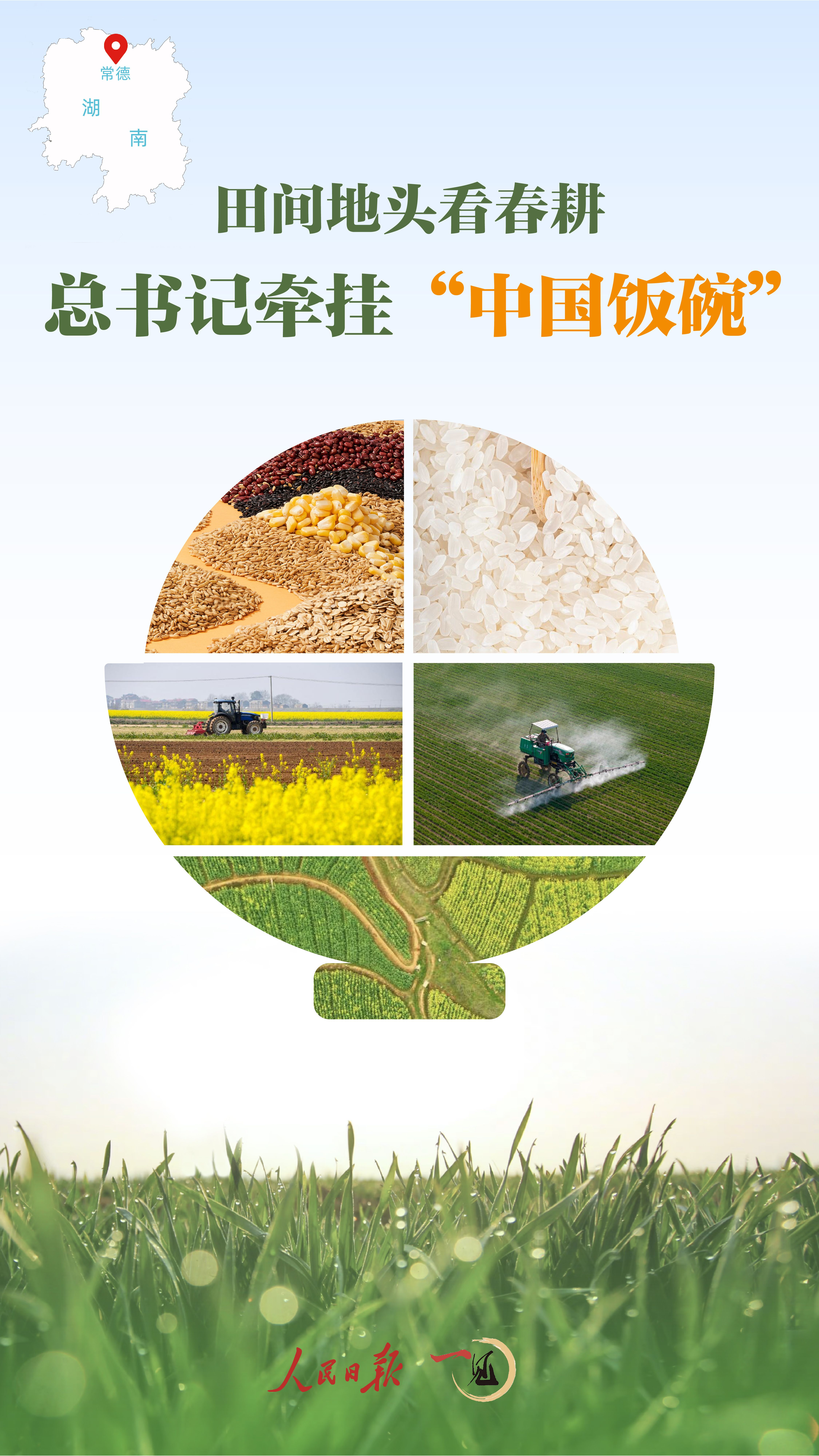 “各地区各部门要压实责任,确保春播面积,细化春季田间管理,保障农资充足供应,强化农业社会化服务,在良种良法良机良田深度融合上下大功夫,落实好强农惠农富农政策,保障农民种粮收益,充分调动农民群众种粮积极性,为全年粮食增产和农民增收开好头、起好步。”这次湖南常德之行,习近平总书记对春耕备耕提出明确要求。