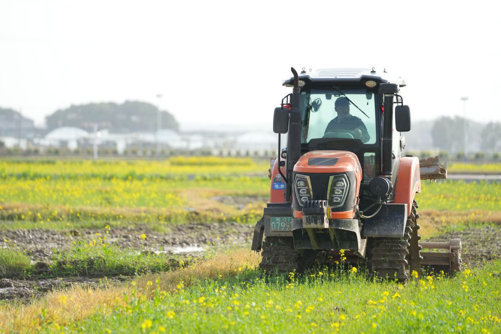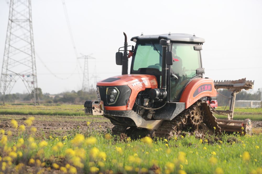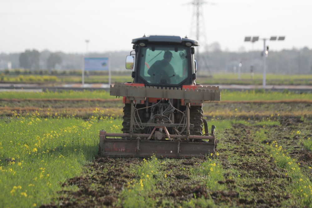 3月19日,在港中坪村,村民驾驶农机翻耕田地。