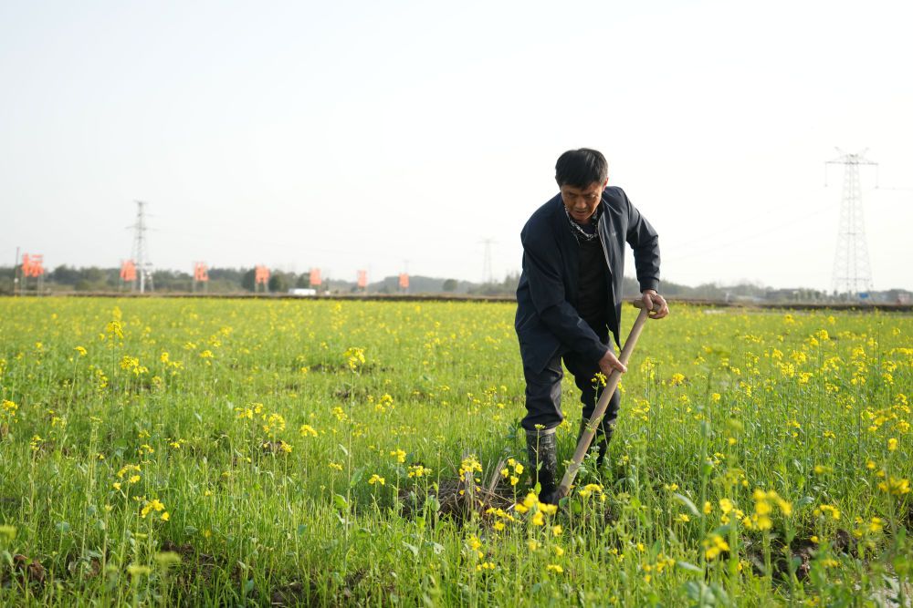 3月19日,在港中坪村,村民在疏通田间的水渠。