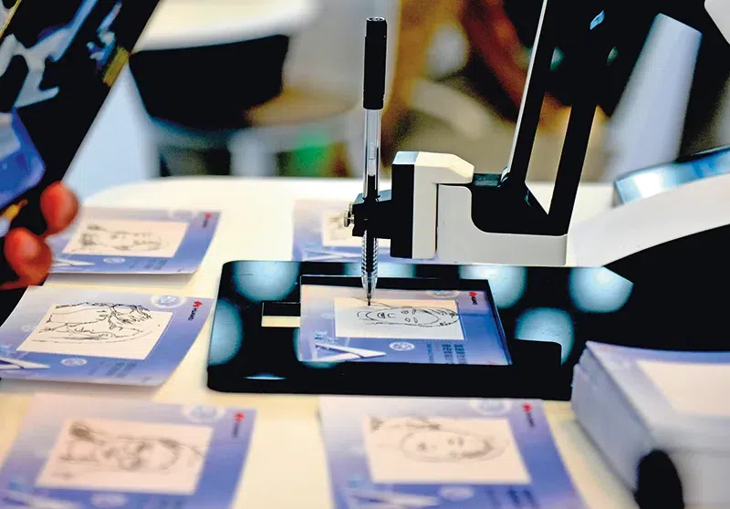 智能素描设备可通过现场拍摄画出素描图。图源:新华社