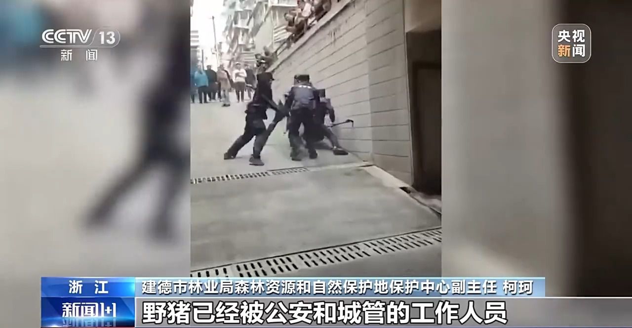 建德市林业局森林资源和自然保护地保护中心副主任 柯珂:我们来的时候,野猪已经被公安和城管的工作人员控制在车库口的位置。我们通知了专业狩猎队,把野猪捆绑起来,之后把野猪送上车,拉到无害化处置的地方处置了。