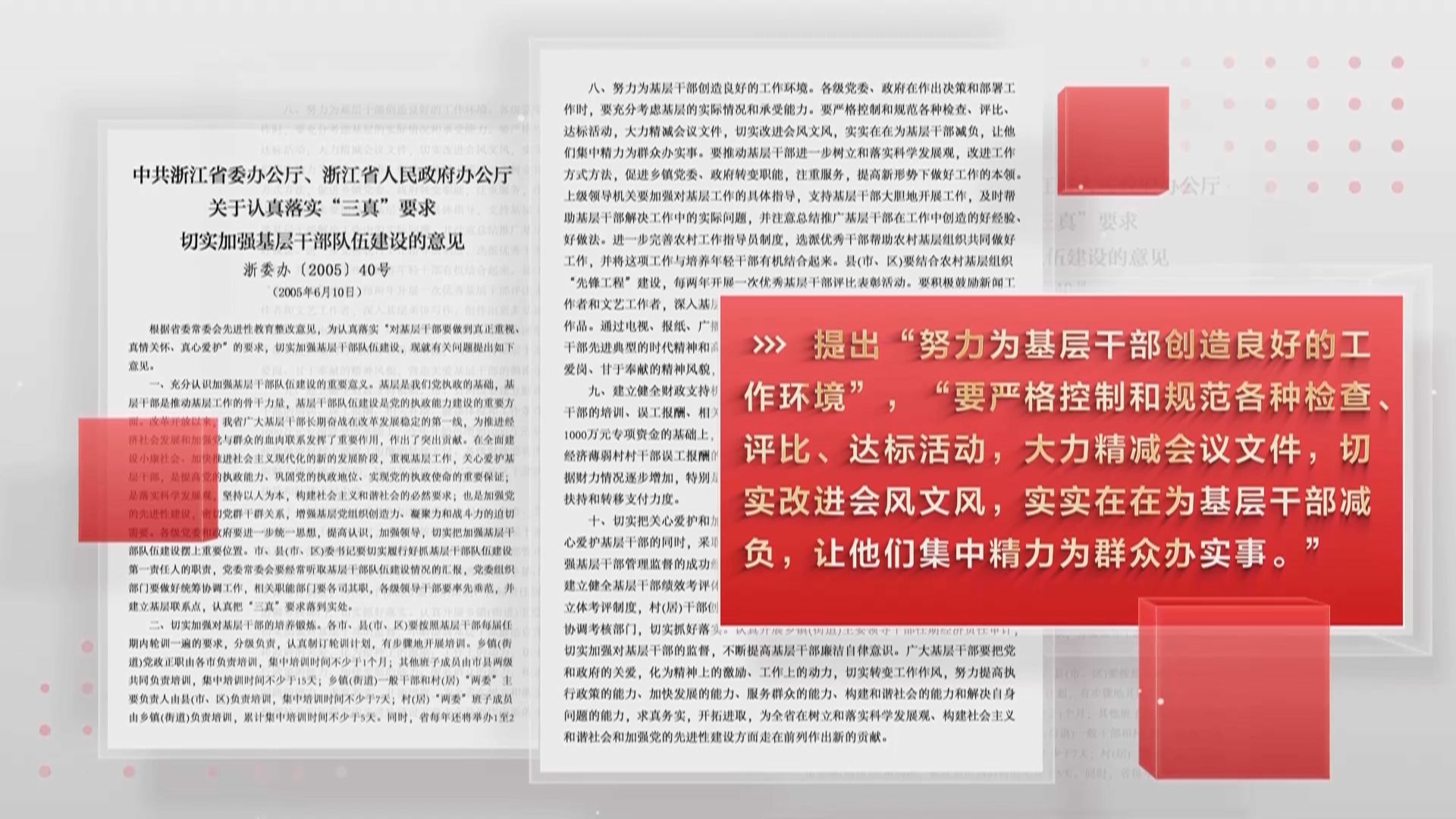 在浙江工作期间,习近平同志高度重视解决形式主义问题,要求“为基层开展工作创造必要的条件”。以关爱基层的情怀,为基层工作减负,“第一视点”讲述浙江持之不懈为基层减负的故事,《今日评说》与您共同关注。