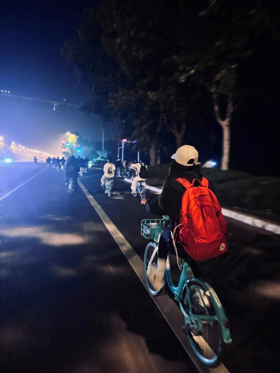 回忆起夜骑之旅,大学生雅琳也满是兴奋与不舍。“有人送水、送小红旗,还有热心市民跟我们合照,加油的声音不断。”虽然骑行五十公里累得腰酸背痛,但雅琳痛并快乐着,“青春具象化了!”