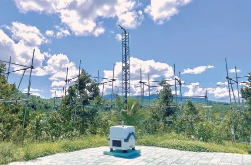 海南省一榴莲种植基地配备了防风架、巡检无人机、人工雨喷洒等一体化智能设备,精准感知和调控榴莲生长环境,实现数字化智能化管理。农民日报·中国农网记者 赵倩倩 摄