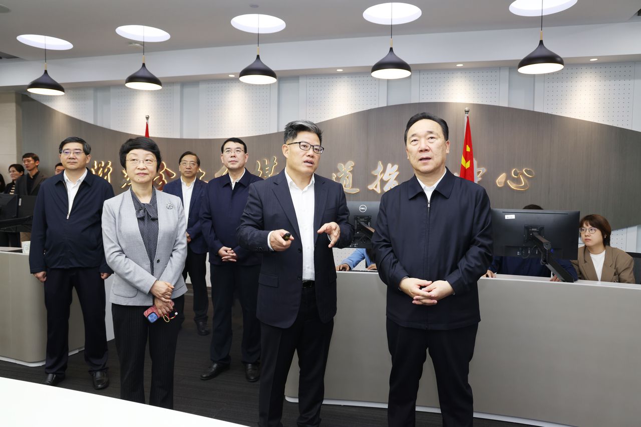11月15日,省委书记、省长王浩走访新华社浙江分社报道指挥中心,了解新型全媒体机构建设情况。潮新闻记者 李震宇 摄