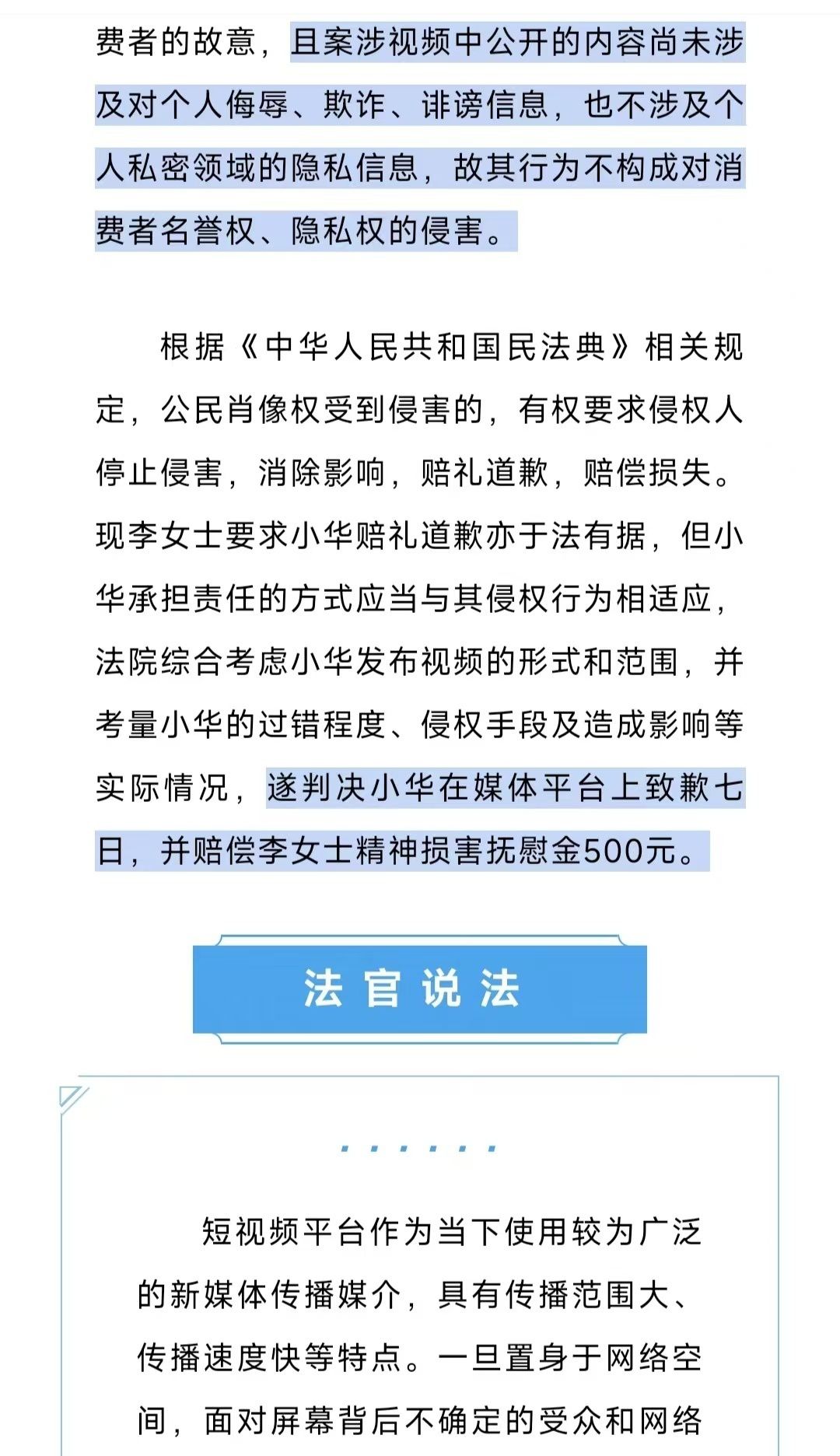 2024年2月,小丽将该短视频平台告到法院,要求其删除视频、赔礼道歉并赔偿精神损失。