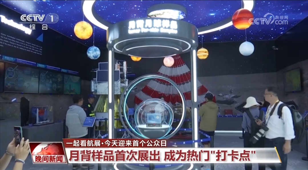 航展上,除了场外飞行表演令人流连忘返,室内展馆也同样人潮汹涌,在国家航天局“中国航天”展台,嫦娥六号携带的月球背面样品首次向国内公众展出。公众还能够近距离接触嫦娥六号返回舱、降落伞等珍贵实物。
