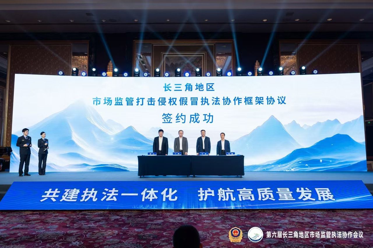 会议现场,沪苏浙皖四地共同签署《长三角地区市场监管部门打击侵权假冒执法协作框架协议》。该协议在原有的《长三角地区市场监管联动执法实施办法》基础上,结合打击侵权假冒工作面临的新形势、新要求,对协作目的、范围、原则、日常制度、执法重点、服务支撑等方面作出针对性规定和要求,推动形成长三角地区打击侵权假冒执法合力,打造长三角一体化执法协作新品牌。