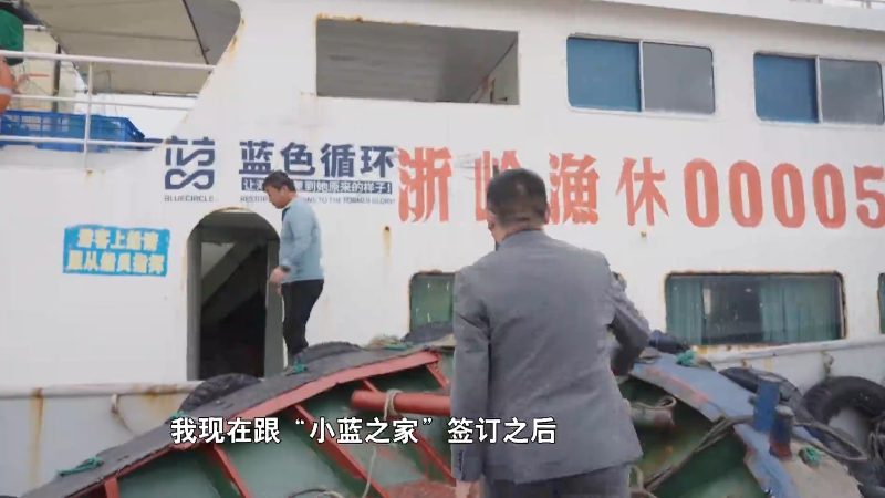 温岭市石塘镇小沙头村渔民 郭文标:我现在跟“小蓝之家”签订之后,我老婆、所有我船上的船员、老大,他都很反感,说你这个疯子,自己忙也忙不过去,还老是给它忙垃圾。