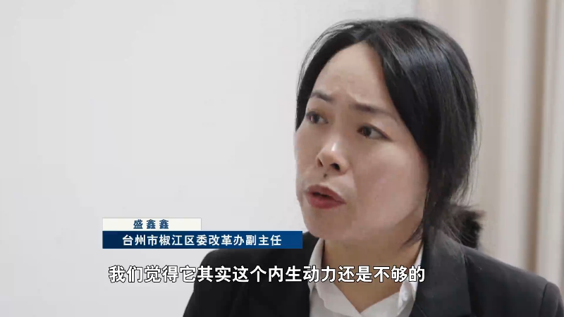 台州市椒江区委改革办副主任 盛鑫鑫:持续推进的过程中,我们觉得它其实这个内生动力还是不够的,可持续性也没有达到我们想象中有可能那么强,所以我们不停在变革。