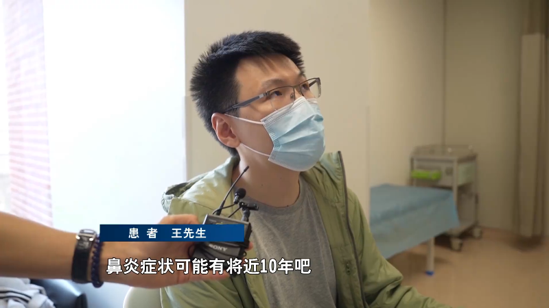 患者王先生:鼻炎症状可能有将近10年吧,主要是过敏,对猫毛狗毛或空气中尘霾过敏。
