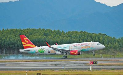装有国产民航轮胎的飞机在桂林两江国际机场完成试飞,平稳降落。吴承强摄(人民视觉)