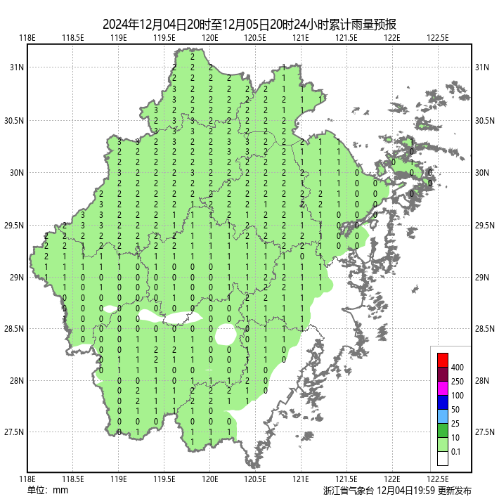昨天(12月4日),浙中北天空依然阴郁,白天气温维持“躺平状态”,大部在13-15℃之间。而时有太阳光顾的浙南就暖很多,大部在18-20℃,像丽水的不少地区甚至是20℃以上。