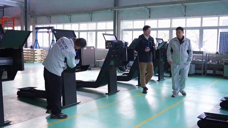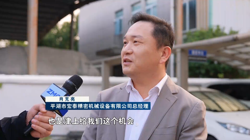 平湖市宏泰精密机械设备有限公司总经理 肖克亮:也是津上给我们这个机会。因为我们做钣金来讲,是总的来讲是整体就一个加工。像我们现在做的排屑机,这些东西算是一个整体(里)的一个小的产品。现在的订单也越来越多。