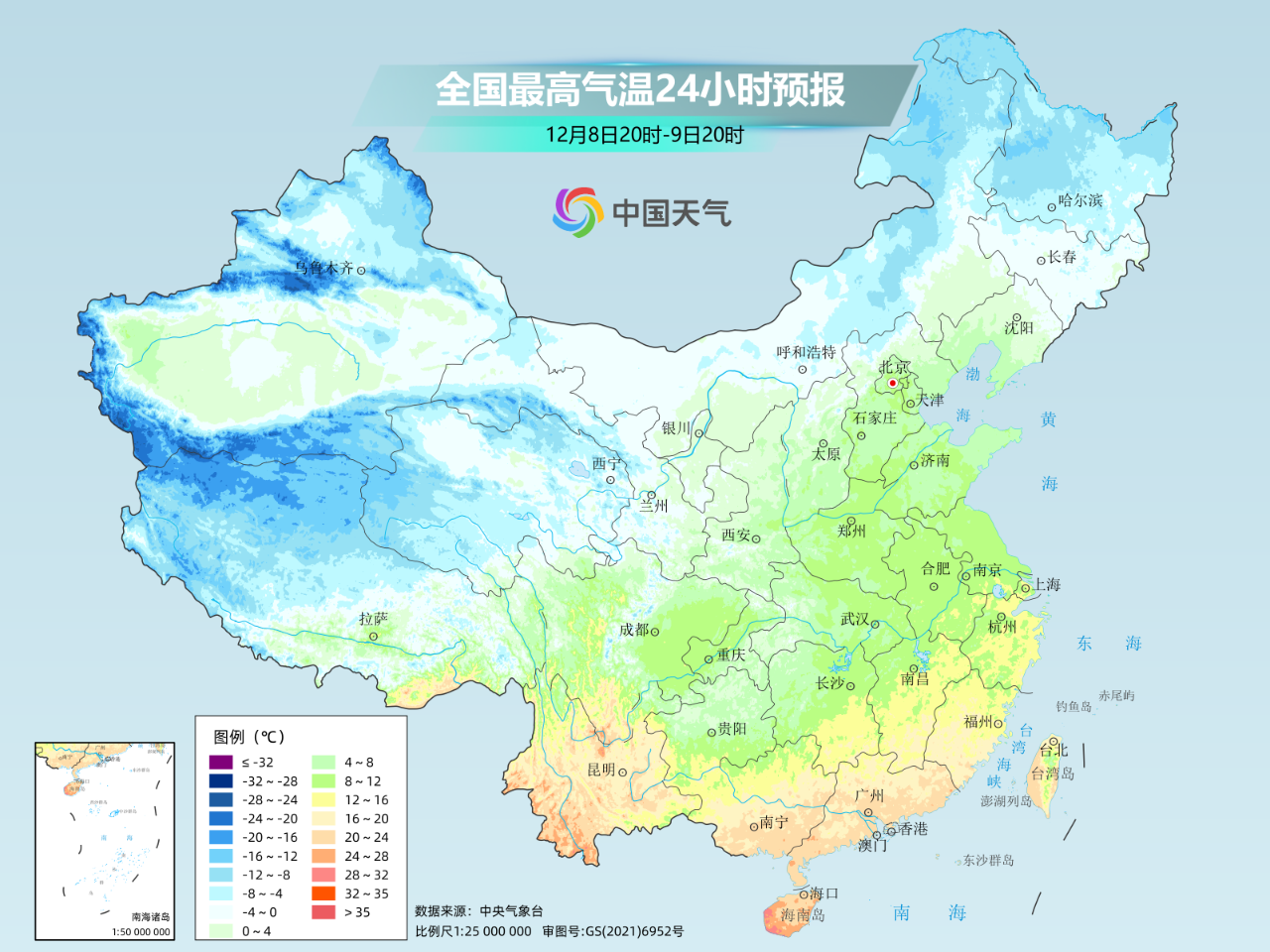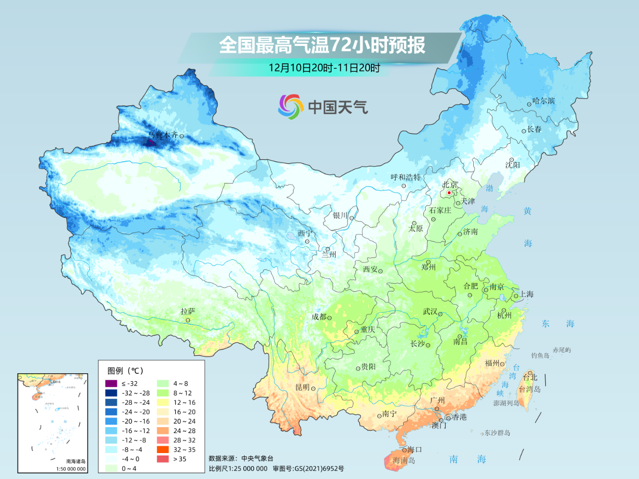 在北方,本周将会是“冷上加冷”。西北地区东部等地最高气温将是今冬首次跌破0℃。兰州10日最高气温可能是今冬首次达到0℃,之后还将连连下跌。哈尔滨最高气温也会从零下10℃左右,一路跌至接近零下20℃,不愧是天寒地冻的“尔滨”!