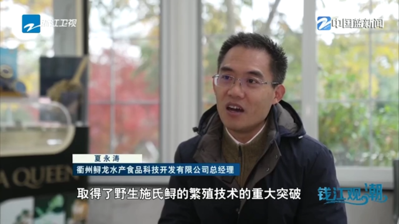 在衢州市柯城区石室乡,衢州鲟龙水产食品科技开发有限公司总经理夏永涛正在向记者介绍一罐鱼子酱。他是一名水产养殖专家,1995年,夏永涛和团队开始了一项科研攻关——野生鲟鳇鱼的人工养殖。雌性鲟鳇鱼生长到7至10岁,就会孕育出鱼卵,这正是鱼子酱的原料。