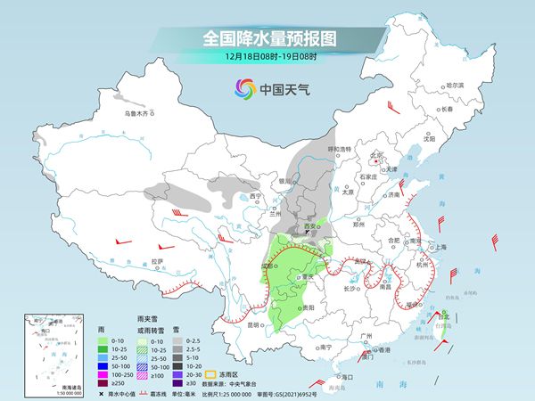 明天,西北地区东部等地雨雪发展。预计,内蒙古西部、青海北部和西部、西北地区东部等地部分地区有小雪或雨夹雪,其中,甘肃南部、宁夏南部、陕西南部等地部分地区有中到大雪。甘肃南部、湖北西部、西南地区东部等地部分地区有小雨。