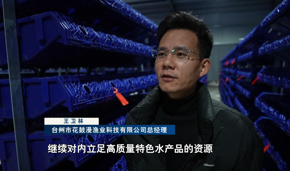 台州市花鼓漫渔业科技有限公司总经理 王卫林:继续对内立足高质量特色水产品的资源,通过工厂化养殖、加工等手段提高产量和附加值,对外开拓海外市场,以多种方式带动村民增收致富。