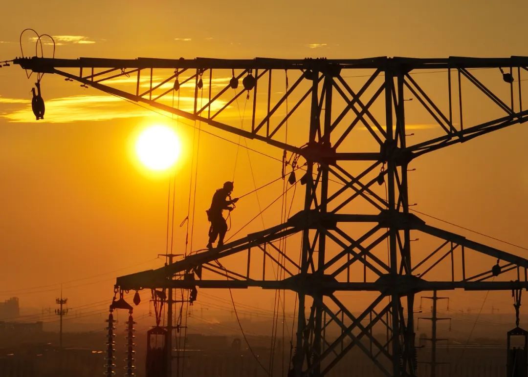 杭州湾上虞经济技术开发区,220千伏绍嘉输变电工程施工人员开展放线作业 图源:新华社