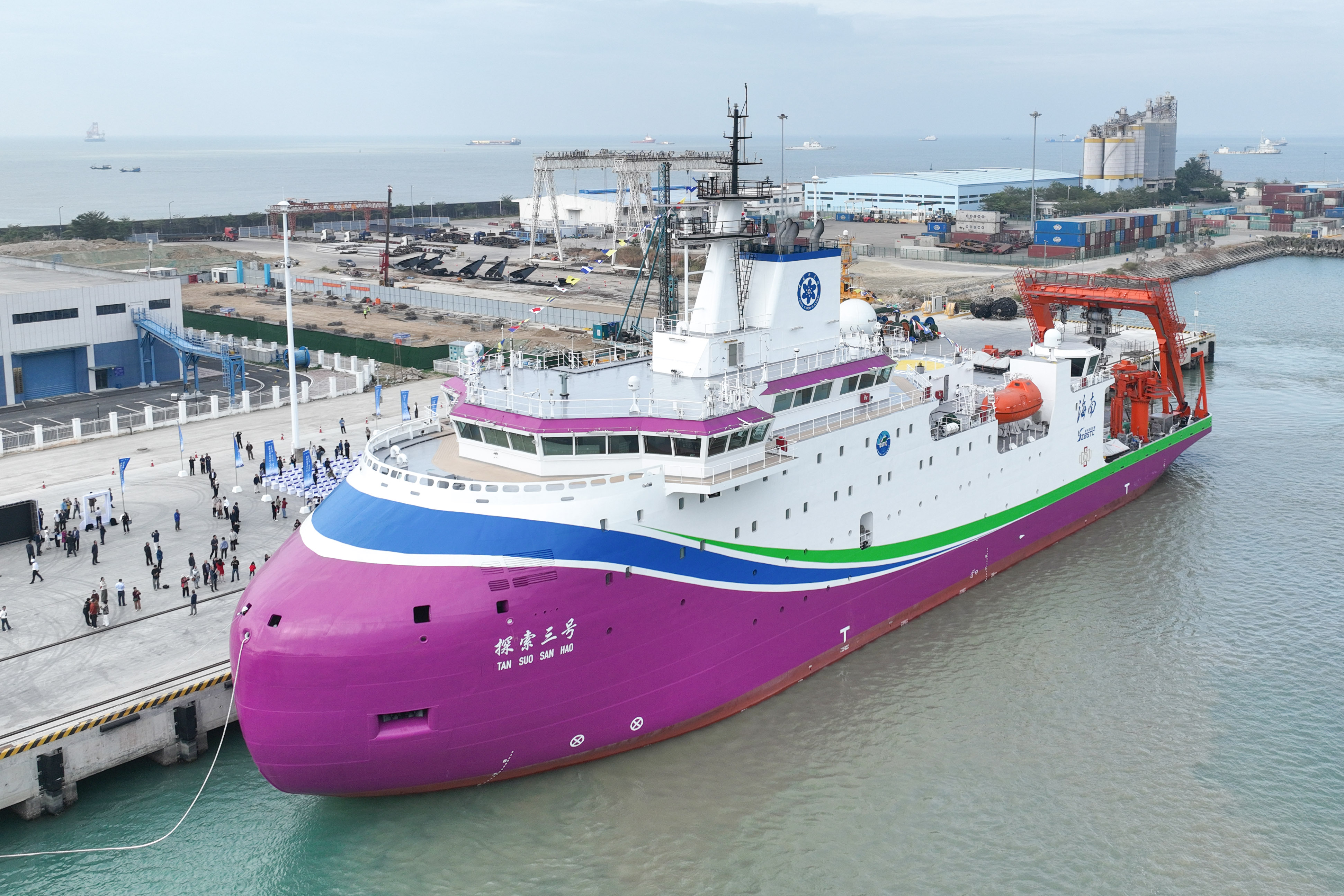 2020年6月28日,我国首艘全数配备国产化科考作业设备的载人潜水器支持保障母船——“探索二号”船在三亚崖州湾科技城南山港入列。2024年7月1日,我国首个公共科考码头——三亚南山港公共科考码头正式开启试靠泊,可满足国内最大主流科考船的靠泊需求。此次,“探索三号”船入列,将进一步推进我国在深远海(极区扩展)深潜及综合作业的能力,为“深海勇士”号、“奋斗者”号等国产载人潜水器和无人潜水器提供作业支持,为我国在创新型国家建设、海洋强国建设提供有力保障。