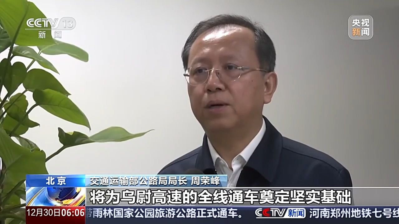交通运输部公路局局长 周荣峰:天山胜利隧道的顺利贯通将为乌尉高速的全线通车奠定坚实基础。为进一步促进新疆经济社会协调发展和民族团结,打造丝绸之路经济带核心区,实施西部大开发战略,服务共建“一带一路”倡议,构建国内国际双循环相互促进的新发展格局,提供重要的交通支撑。