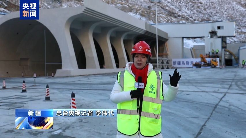 总台央视记者 李伟代:这里是海拔2800多米的天山胜利隧道施工现场。现在正是中午,一天中气温最高的时候,但气温也只有零下22摄氏度。我身后就是天山胜利隧道在天山北麓的进口端,隧道就是从这里穿越天山,一直打过去到南麓。大家可以看到三个洞口依次排列,未来从乌鲁木齐方向开车去库尔勒,从这个洞口20分钟就可以穿过隧道。如果从库尔勒北上来乌鲁木齐,车辆就从这个隧道口出来。中间的中导洞通车后将用于应急救援等服务。