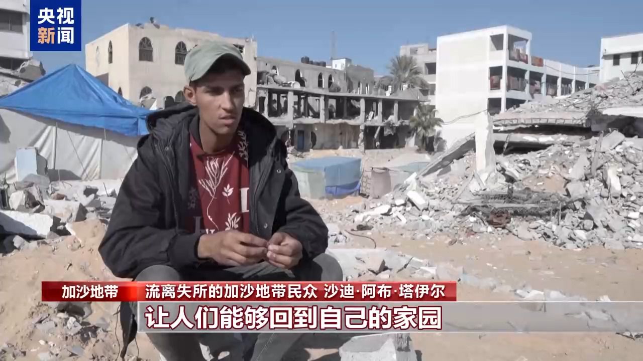 流离失所的加沙地带民众 沙迪·阿布·塔伊尔:在新的一年里,我的愿望是重建加沙地带,让人们能够回到自己的家园。现在的状况让人无法生活,因为所有的房屋几乎都被摧毁了。无论是在拉法,加沙城还是加沙地带东部,每个地方都一样。