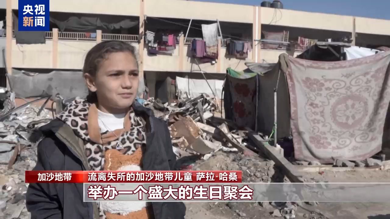 流离失所的加沙地带儿童 萨拉·哈桑:今天是我的生日,我已经11岁了。我曾希望能在家里,举办一个盛大的生日聚会。我的愿望是在新年里回到家里, 举办一个生日聚会,邀请所有的亲朋好友。我要去公园玩,做我想做的、梦想的一切。