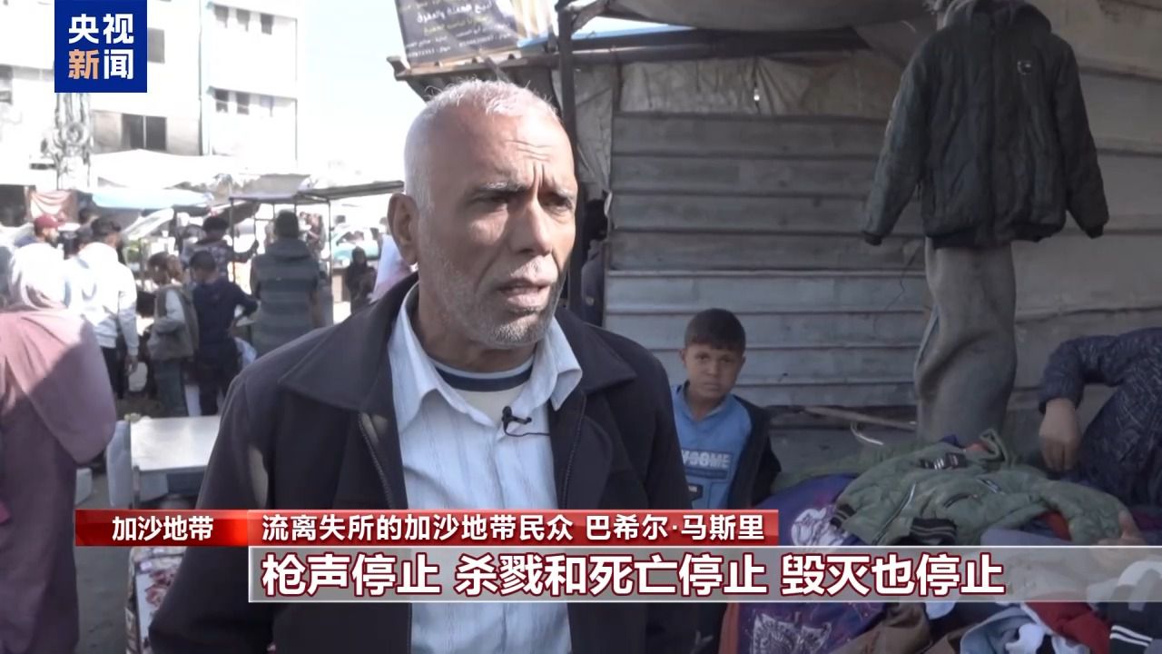 总台报道员 雅各布·萨拉玛:巴勒斯坦加沙地带的民众希望新的一年能够为他们带来好消息,能实现他们的愿望,那就是重返家园,结束战争,实现地区和平,并结束长达近15个月的噩梦。这段时间他们经历了无尽的苦难,整个加沙地带的面貌都变得难以辨认。