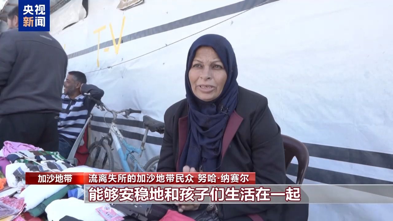 流离失所的加沙地带民众 努哈·纳赛尔:我最大的愿望是有一个家,能够安稳地和孩子们生活在一起。我们真的已经太累了,我们只想在自己的家里安定下来。和孩子们团聚,回到旧日时光,回到过去彼此陪伴的日子。我也希望战争能够停止,实现孩子们的愿望。孩子们就像失去未来的孤儿。