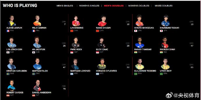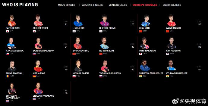 WTT新加坡大满贯将于1月30日至2月9日举行,官网更新了双打名单,国乒参赛队员为: